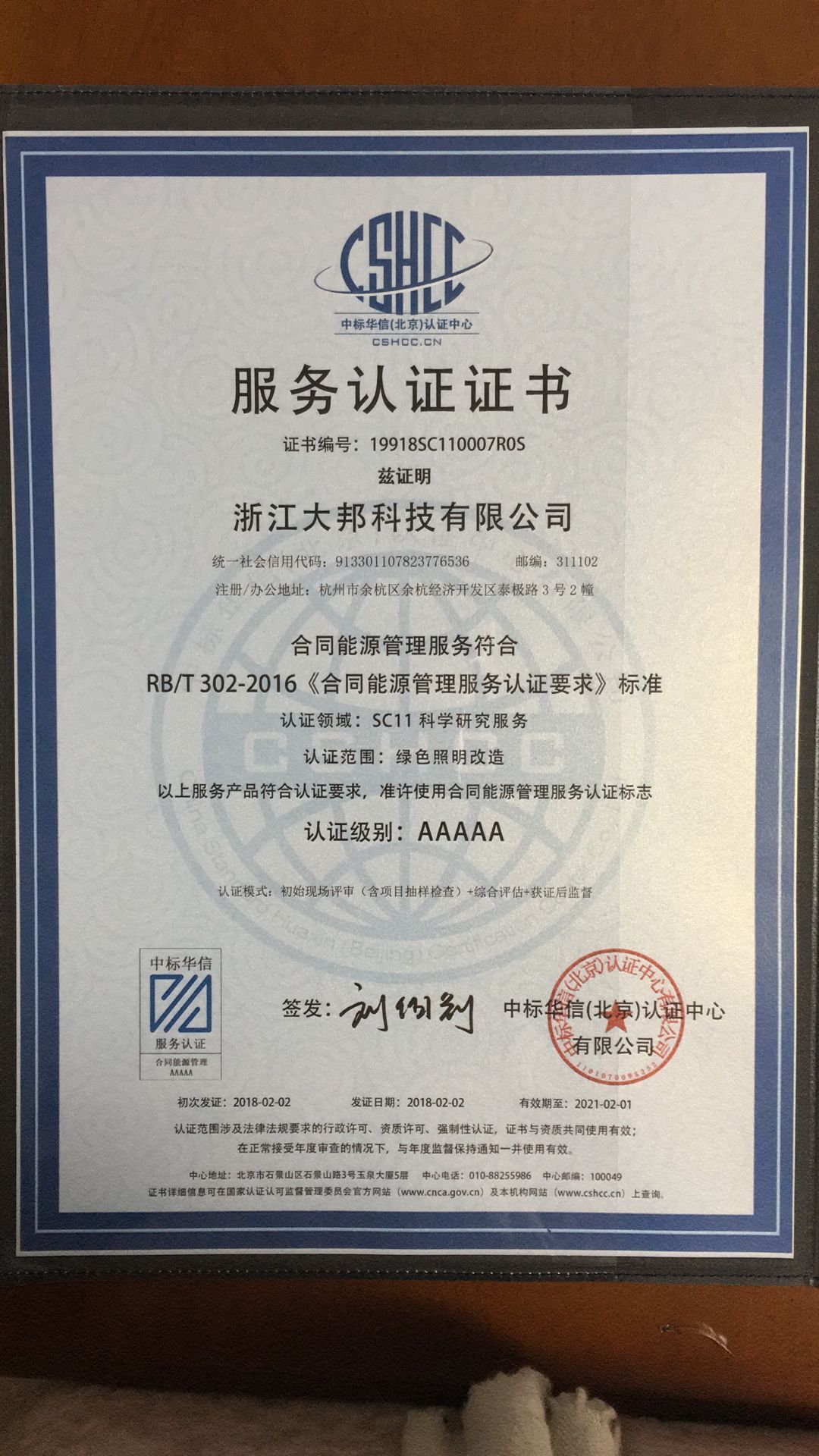 热烈庆祝我司通过RB/T 302-2016《合同能源管理服务认证要求》标准AAAAA级认证